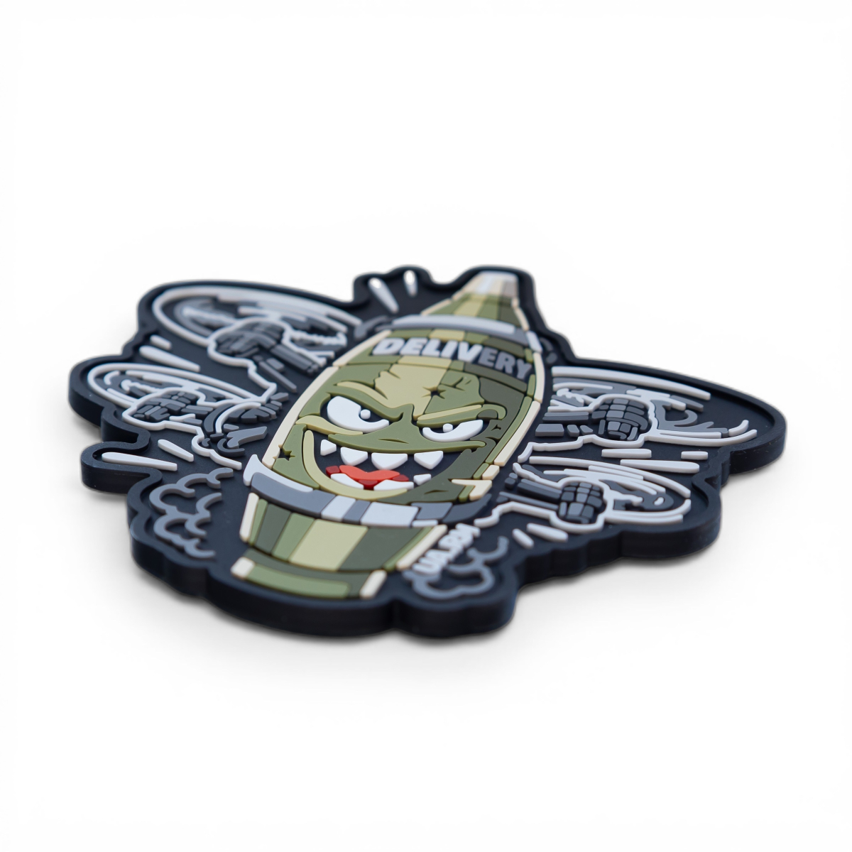 The “SPECIAL DELIVERY” patch embodies the spirit and ingenuity of the Ukrainian drone resistance, where every delivery is unique and uncompromising. Its central figure is an anthropomorphized piece of ammunition, grinning menacingly as it expresses its readiness to deal a painful and inevitable blow to the enemy. Instead of wings, it has four powerful quadcopter propellers that create a whirlwind of speed and maneuverability, allowing it to overcome any obstacle.