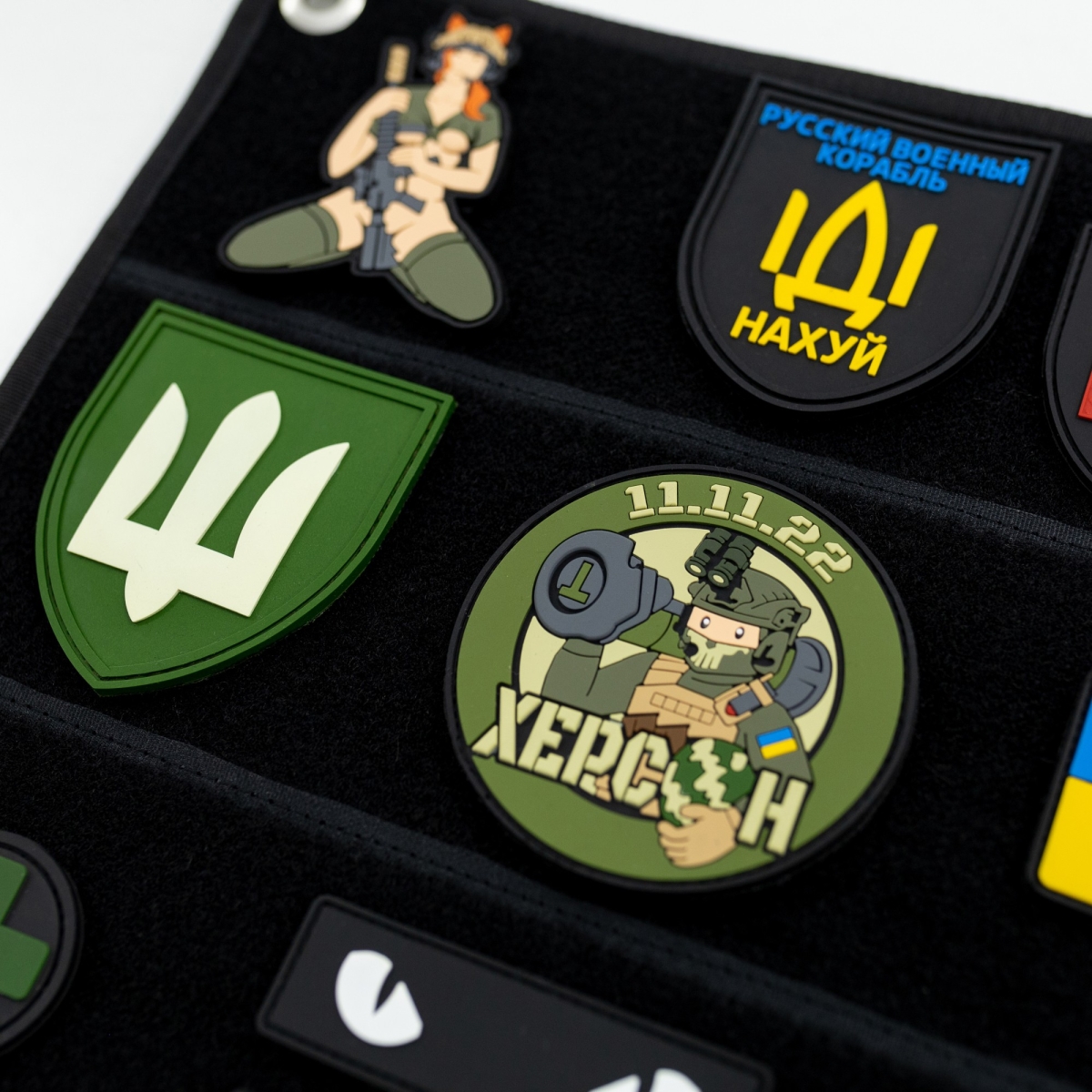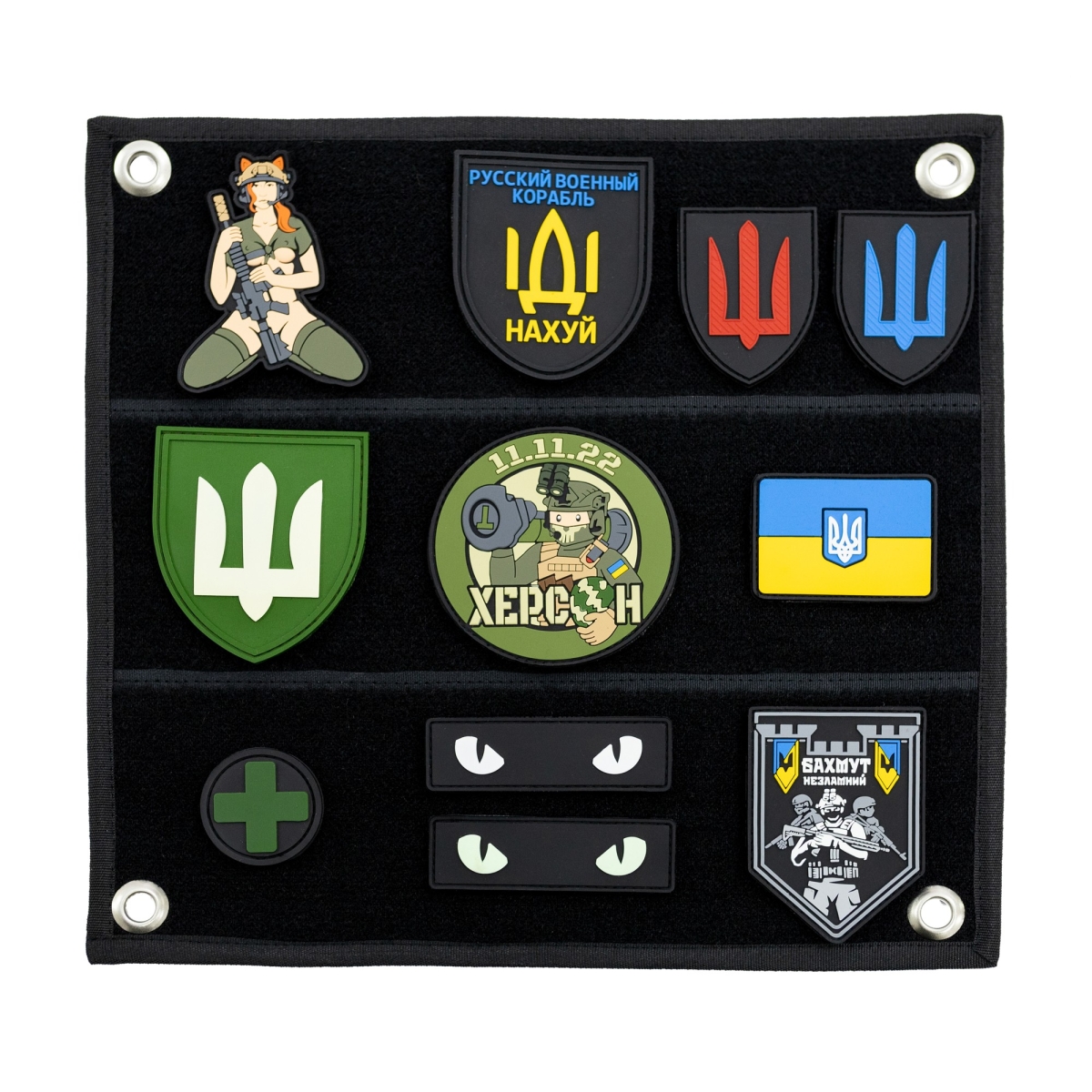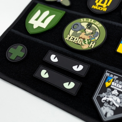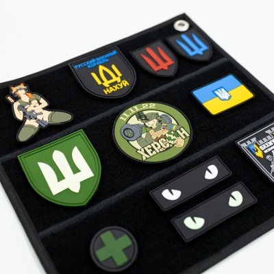 PVC chevrons with various designs are becoming more and more popular. If you have your own collection that needs to be conveniently stored and transported, Brand Element offers to buy a panel patch of its own production in the size you need. The soft and durable patch panel has holes for mounting on the wall or crossbar and a special firmware, thanks to which chevrons, stickers, badges are placed on it in a vertical and horizontal position, according to your wishes.
