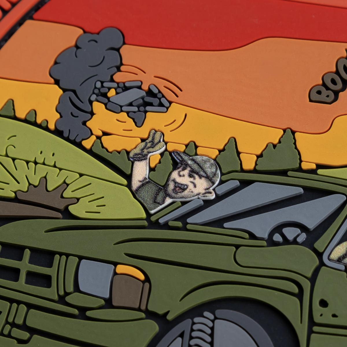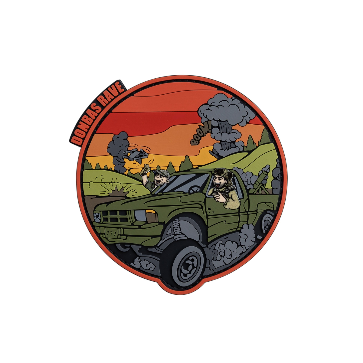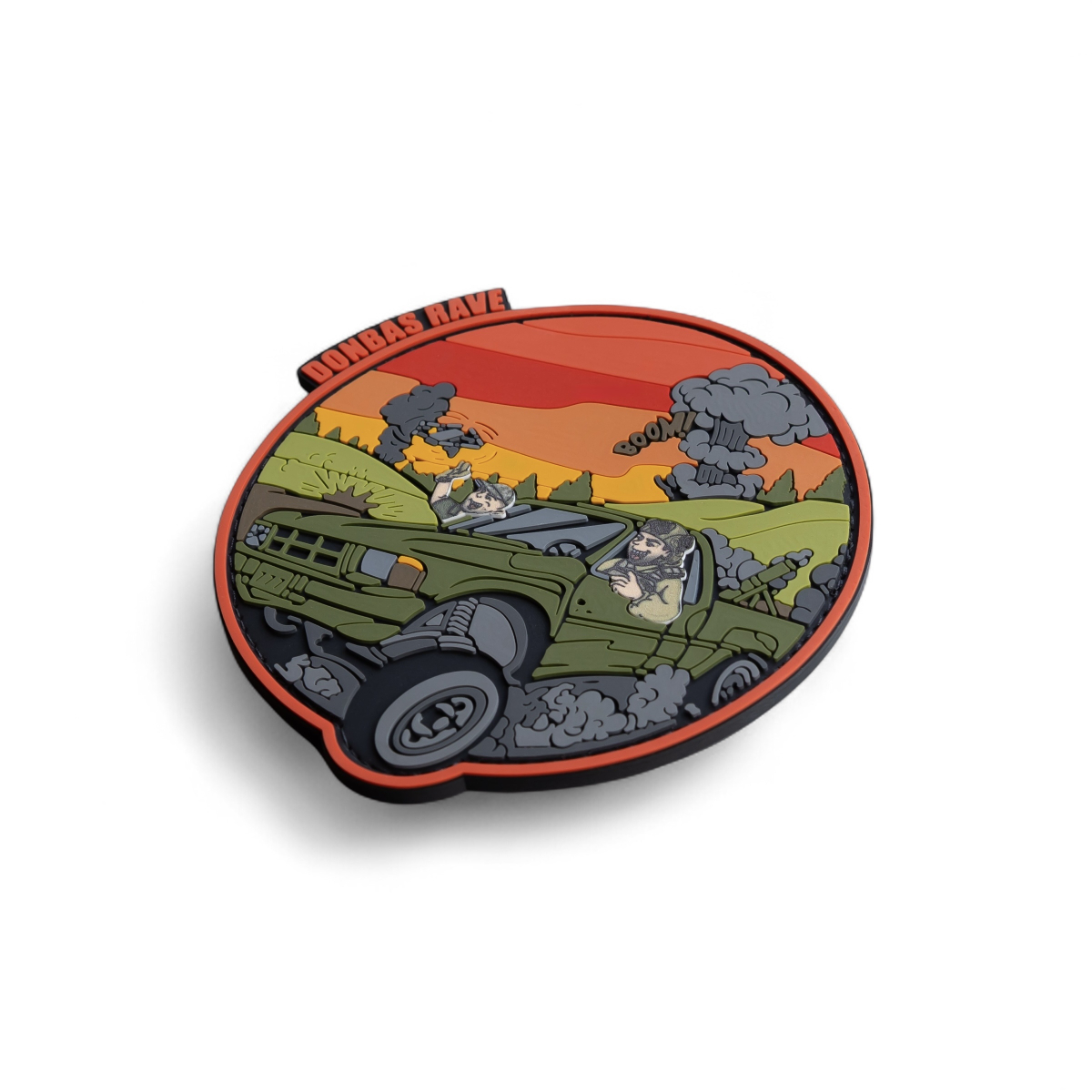 The Donbas Rave patch is a dynamic and emotional accessory that reflects the chaos and determination inherent in modern military conflict. It depicts two soldiers in an open pickup truck racing through explosions and smoke, while the inscription “DONBAS RAVE” ironically emphasizes the ‘heated’ nature of the situation. PVC patch (chevron) “Donbas Rave” PVC patch (chevron) “Refueling”