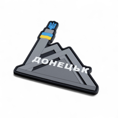 This patriotic patch is dedicated to the Ukrainian city of Donetsk. It features the name of the city, Donetsk, in large letters. The emblem is a concise yet expressive sign of respect and support for Donetsk.