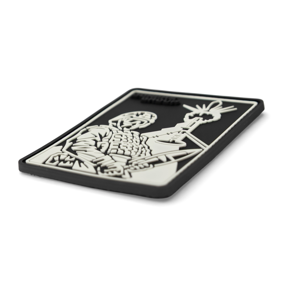 The Mortar Patch is a graphic ode to the dark but vital work of the artilleryman. The black and white colors not only create contrast, but also symbolize the line between life and death, which the soldier controls with his precise fire. It is the emblem of those who “cover” the enemy, providing protection for the infantry, and whose work always remains in the thick of the most intense battles.