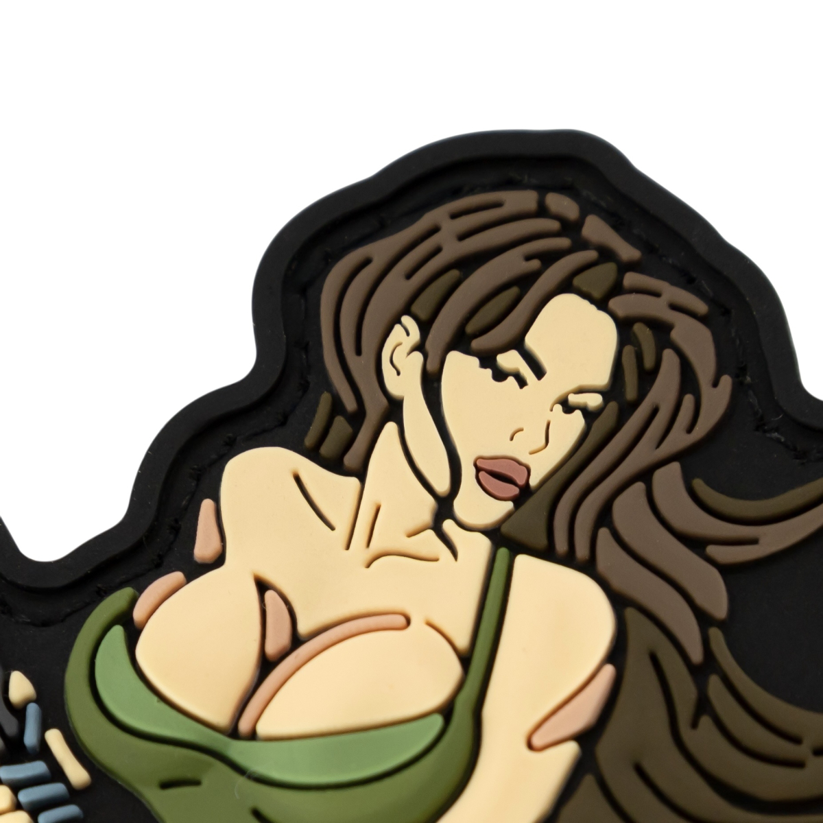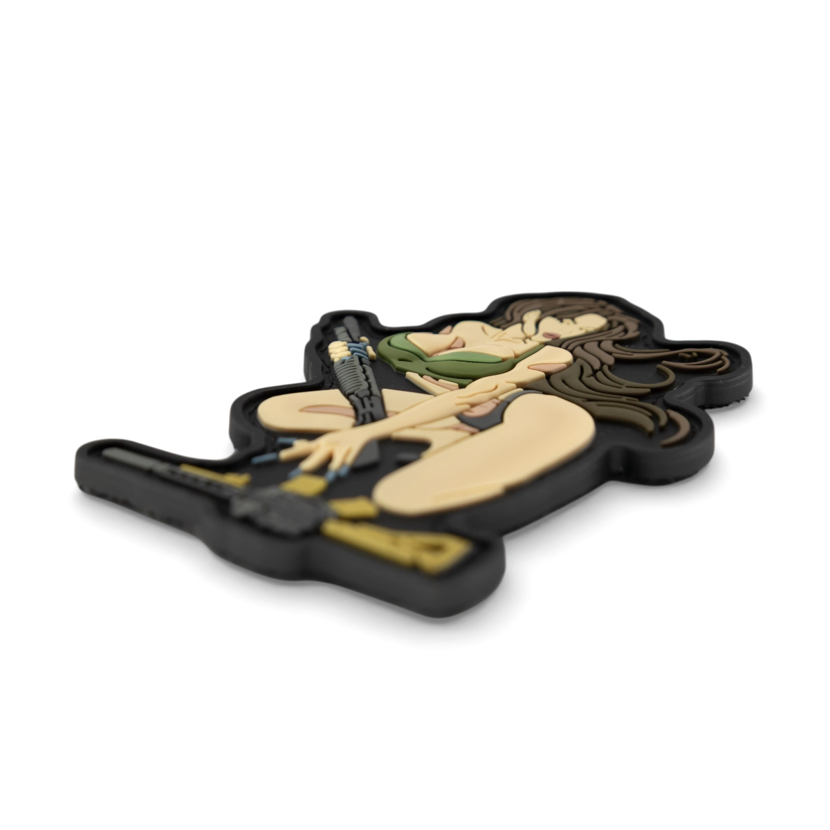 This patch is a bold and provocative combination of feminine appeal and military aesthetics, executed in a style reminiscent of classic pin-up images adapted to modern tactical culture.