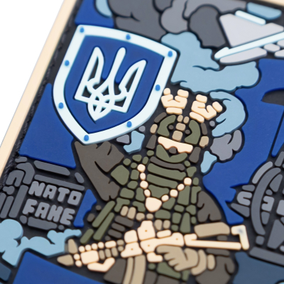 The image shows a Ukrainian soldier defending alone. Above him are NATO symbols, like a distant sky: they seem to be present, but are unattainable. The shield with the trident is the only thing that really works. The inscription NATO FAKE is not an insult, but a cold fact of experience. Because when missiles fly, it is not an alliance that saves you, but your own willingness to fight. “Fiction” is a patch about the illusion of security.