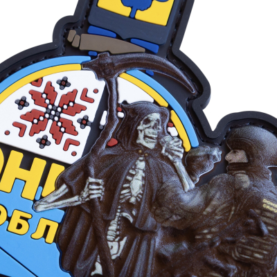 Патч "Танок зі смертю" — це потужний символ незламності та готовності до боротьби. На ньому зображено Смерть із косою, що символізує неминучість розплати для ворогів, поруч із воїном у повному спорядженні. Цей шеврон є оберегом для тих, хто стоїть на захисті України, нагадуючи про те, що страх відступає перед обличчям обов'язку.