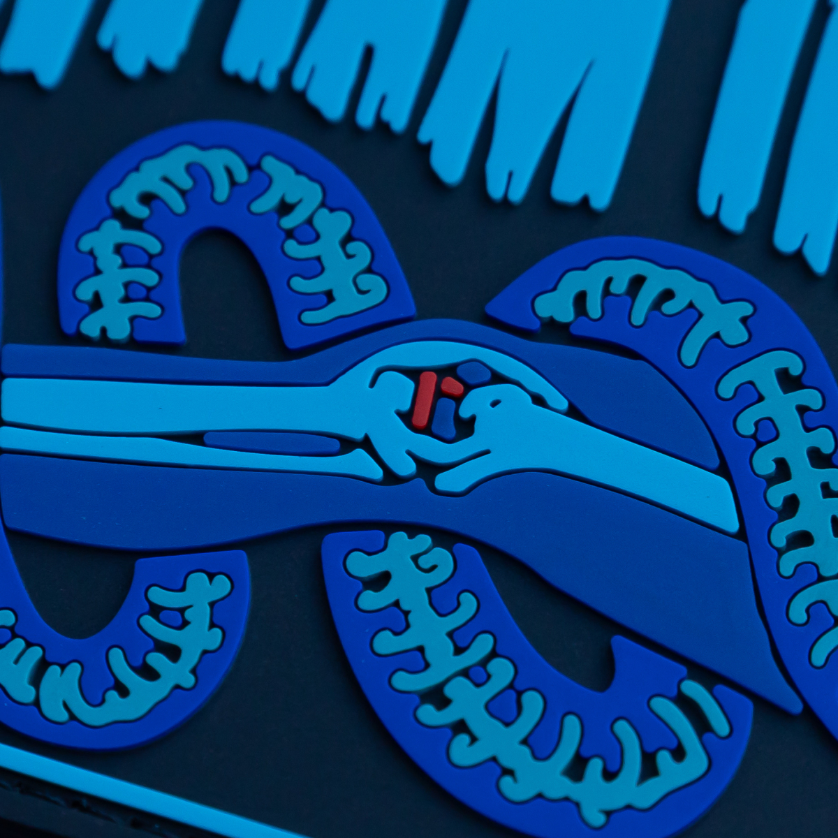 ПВХ-патч “Колінам п*зда” від партнера f_spets — яскравий символ сили та непохитності. Агресивний дизайн зі змією та зброєю підкреслює рішучість і готовність до викликів.