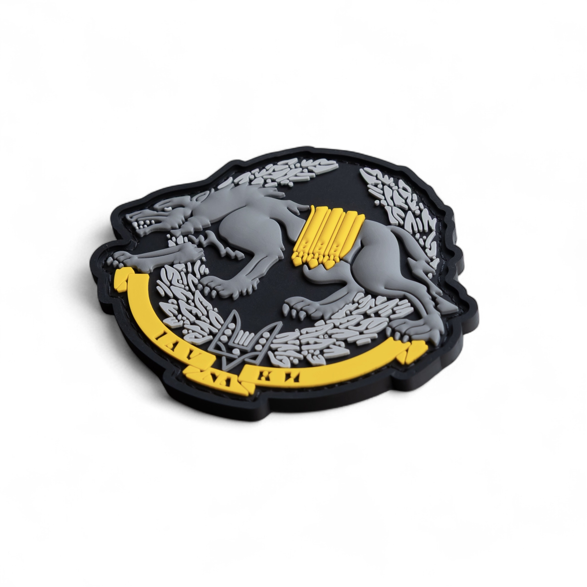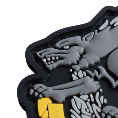 Якісний та деталізований гумовий патч, що поєднує в собі символізм давньоруських часів та сучасну українську символіку. Центральним елементом є зображення лютої вовчиці сірого кольору, що мчить уперед. Вона несе на спині зв'язку з 5-ти снарядів, що символізує силу, швидкість та вогневу міць.