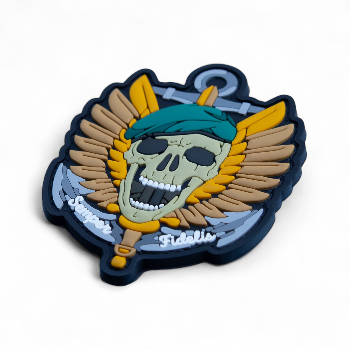 Цей патч є потужним символом вірності та незламності духу: оскал черепа в береті, обрамлений золотавими крилами, підноситься над якорем, втілюючи морську міць та готовність до бою. Стрічка з латинським девізом "Semper Fidelis" ("Завжди вірний") проголошує беззастережну відданість і вічну пам'ять.