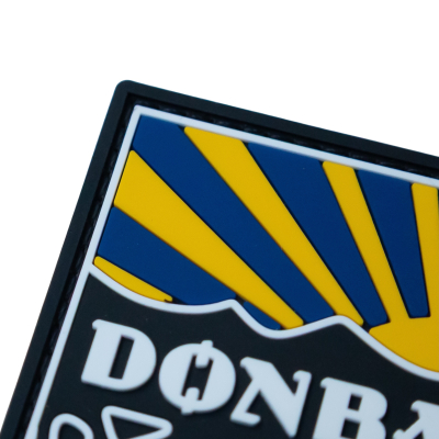На тлі суворих гірських силуетів Донбасу (териконів), що символізують індустріальне минуле та теперішній ландшафт війни, проступає контур автомата. Зброя тут не є статичною. Її білий, ніби намальований неоном, контур натякає на постійний рух, готовність і використання в умовах, коли час і простір деформуються. Це інструмент "движухи", невід'ємна частина бойового життя.