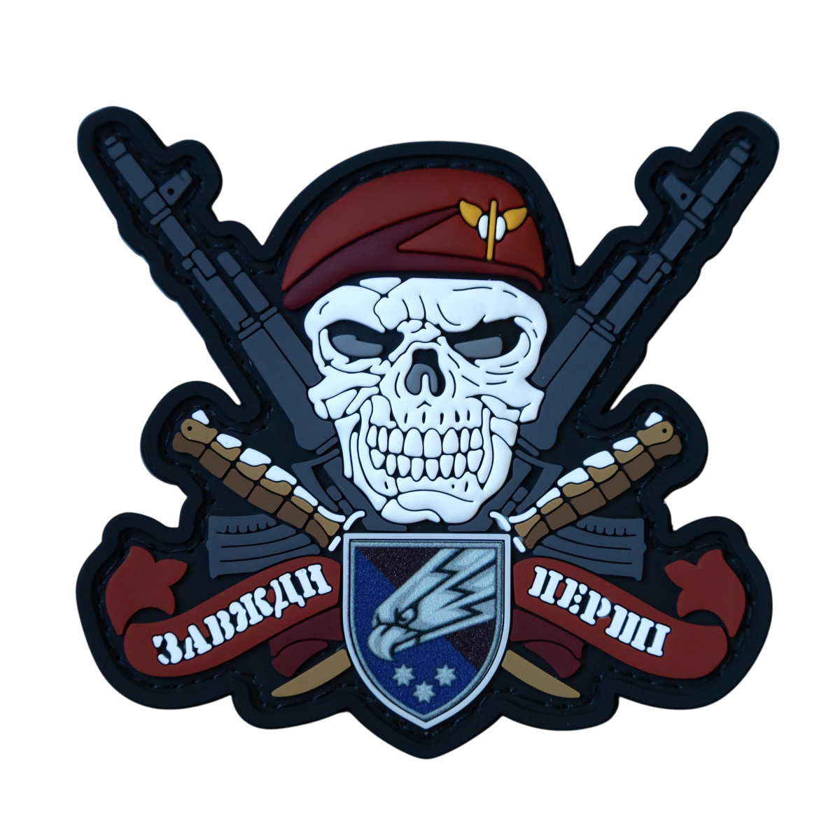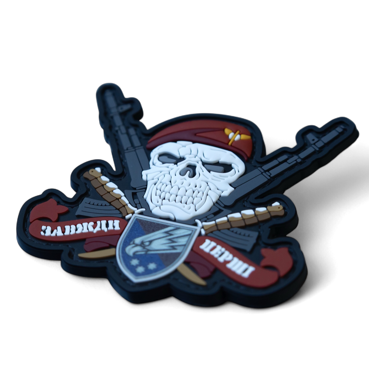 Патч "ЗАВЖДИ ПЕРШІ" — візуальне втілення бойової люті та безкомпромісного лідерства. У ньому злилися в єдиний образ зухвалість і відданість.