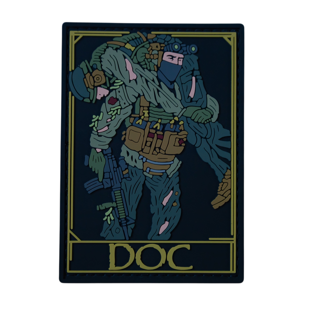 Цей патч є ілюстрацією мужності та самопожертви військового медика. Зображення втомленого бійця, який виносить пораненого товариша з поля бою, свідчить про найвищу цінність братерства, милосердя та вірності обов'язку. Це данина поваги тим, хто, попри небезпеку, завжди стоїть між життям і смертю, повертаючи поранених додому.