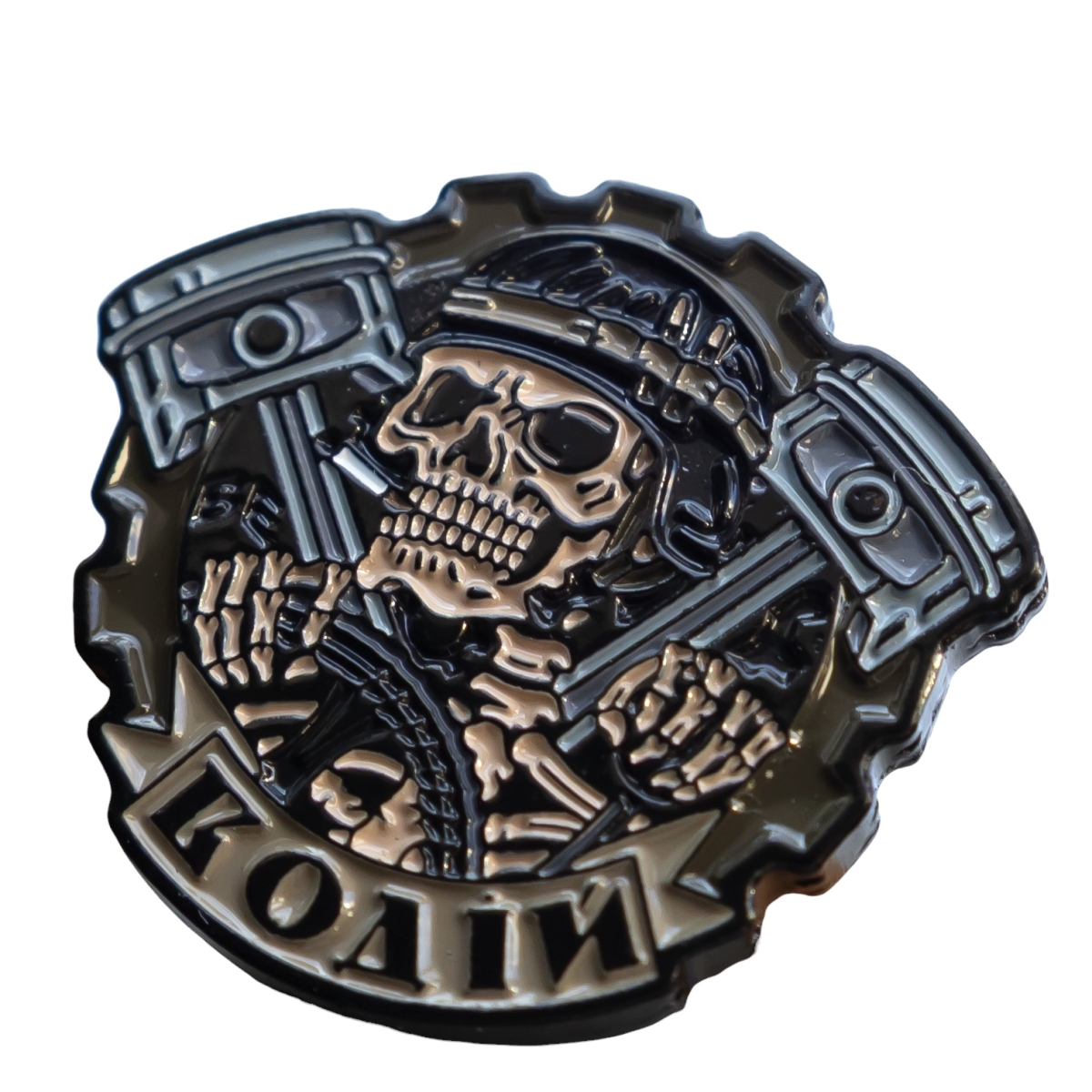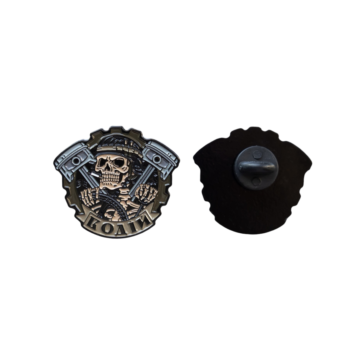 Пін “Водій” — це символ того, хто тримає машину війни в русі, навіть коли навколо пекло. Той, кого не видно ззовні, але від кого залежить усе: швидкість, маневр, життя екіпажу. Череп у шоломі водія з цигаркою в зубах — образ спокою серед хаосу, холодної зосередженості й зневаги до страху.