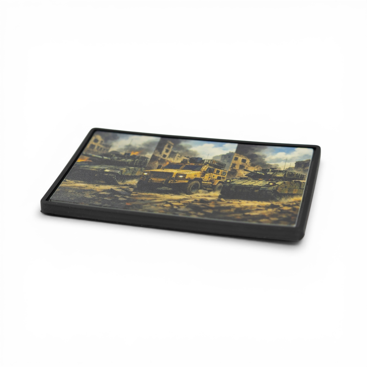 Цей патч — візуальний маніфест залізної волі та технологічної переваги. На одному полотні зібрані три стовпи сучасної бронетехніки, що змінили хід бойових дій: важкий танк, бронеавтомобіль класу MRAP та бойова машина піхоти.