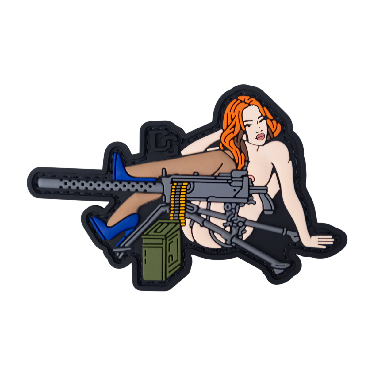 Цей патч виконаний у класичному стилі Pin-up (пінап), який історично наносили на фюзеляжі літаків або куртки пілотів під час Другої світової війни. Модель має назву «Machine Gun Mary» (Кулеметниця Мері).