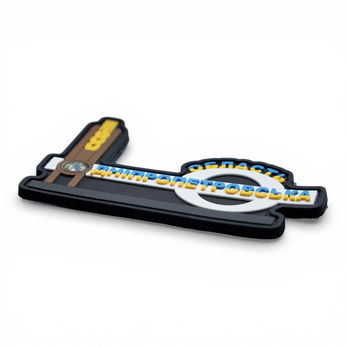 На изображении представлен патч «Днепропетровская область». Этот аксессуар выполнен в стилистике дорожного знака или указателя, символизирующего принадлежность к Днепропетровской области. На патче четко видна надпись «ДНЕПРОПЕТРОВСКАЯ ОБЛАСТЬ», выполненная в желто-синих цветах, которые ассоциируются с национальной символикой Украины. Слева от надписи изображен колос, который является символом земледелия и богатства региона. Этот патч идеально подойдет для тех, кто желает выразить свою идентичность и привязанность к Днепропетровской области.