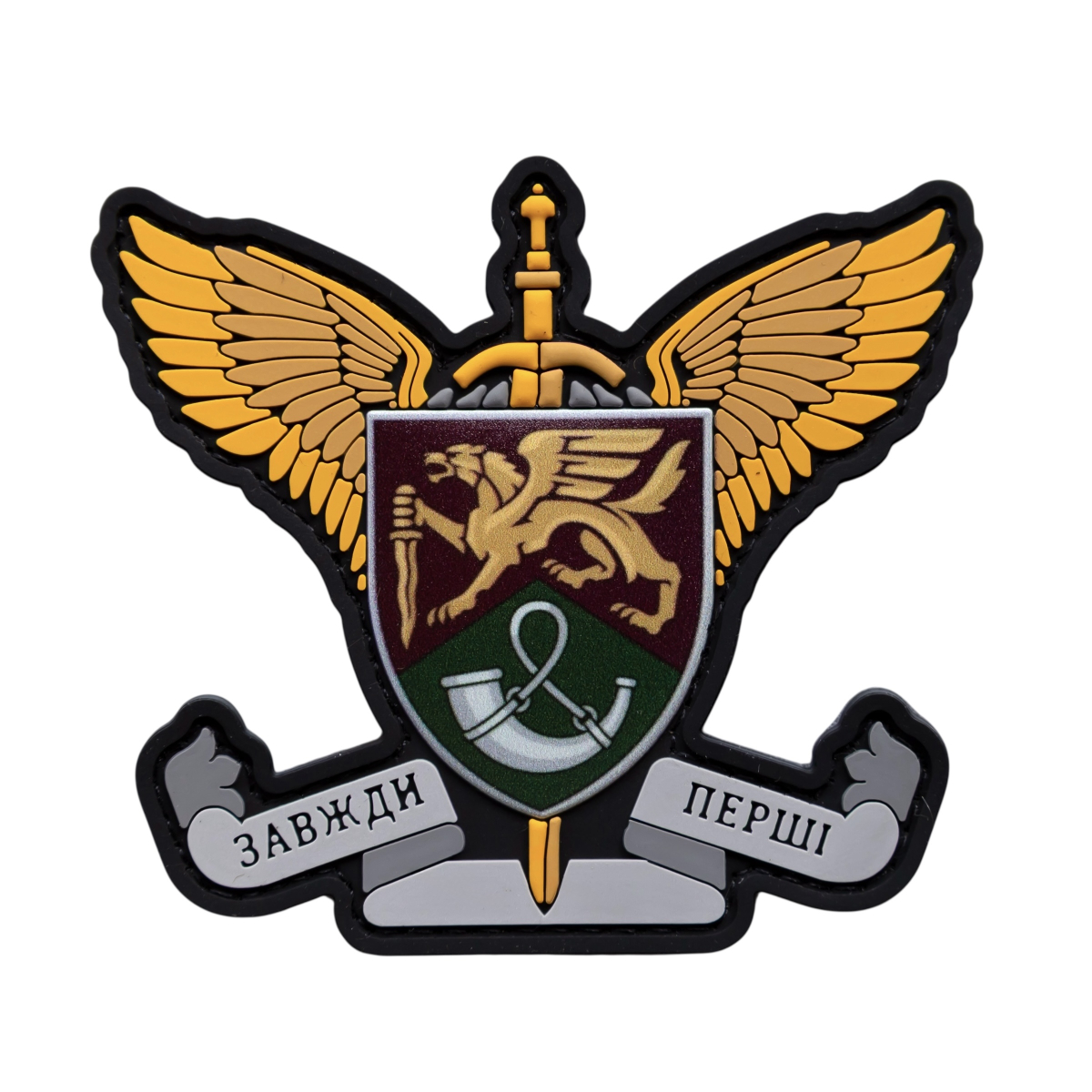 Эмблема 71 отдельной егерской бригады. Девиз: «Всегда первые» подчеркивает их боевую готовность.