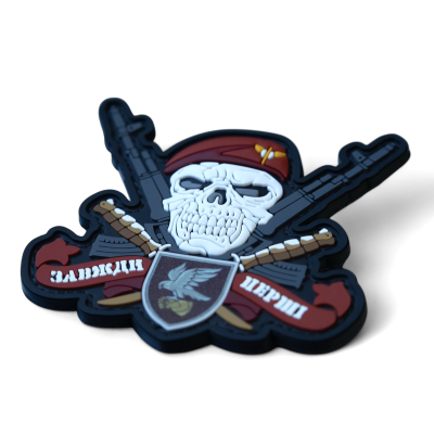 Центральный череп в кроваво-красном берете олицетворяет презрение к опасности и является символом военной элиты, не знающей страха. Скрещенные автоматы — это залог огневой мощи, сопровождающей каждый шаг передовой группы. А в сердце композиции, на щите, пульсирует дух подразделения, подтверждающий его славную историю.