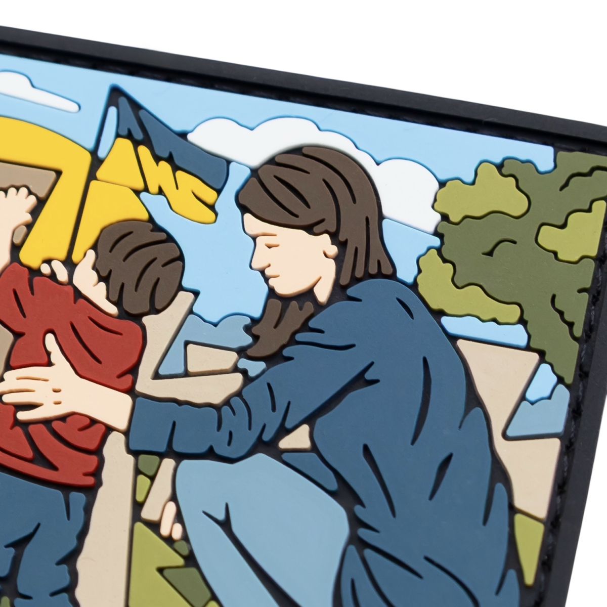 Это не абстракция и не художественный образ. Это реальность, которую мы видим слишком часто. На патче — вдова, пришедшая вместе с ребенком на могилу своего мужа и отца своего ребенка. Она не плачет и не отводит взгляд.